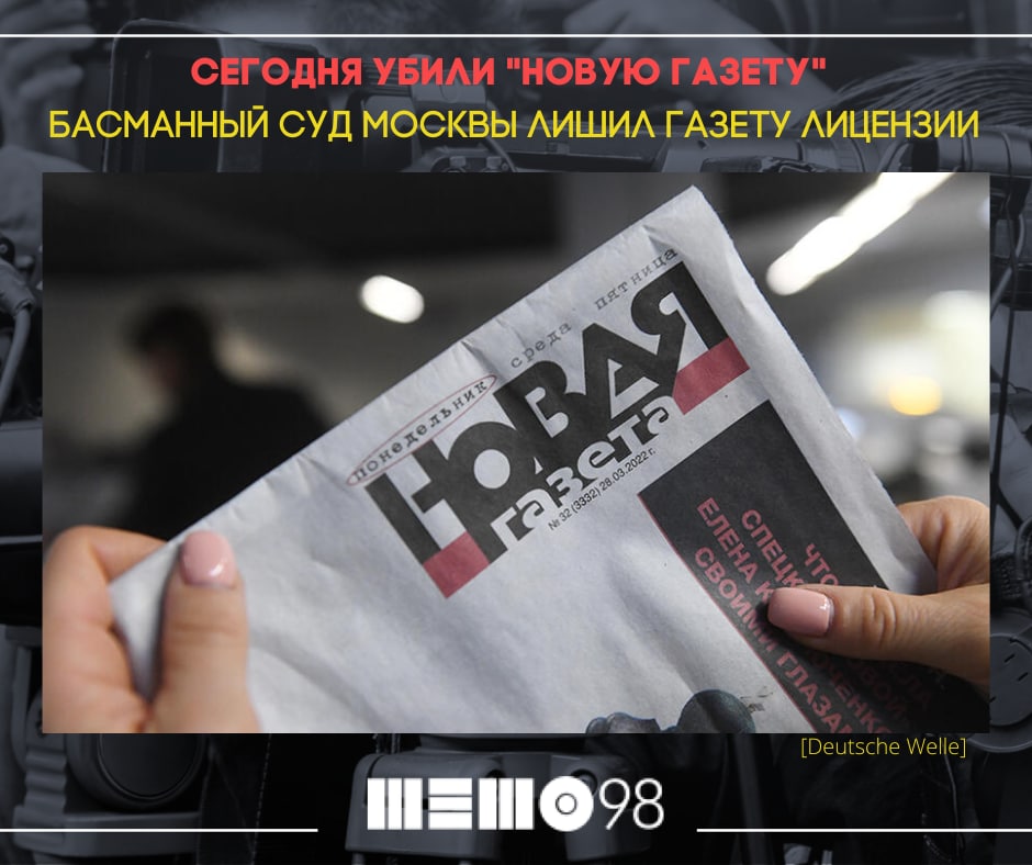 Сегодня "Новая газета", ведущая российская независимая газета, главный редактор которой в прошлом году стал одним из лауреатов Нобелевской премии мира, была лишена лицензии. (The Guardian)