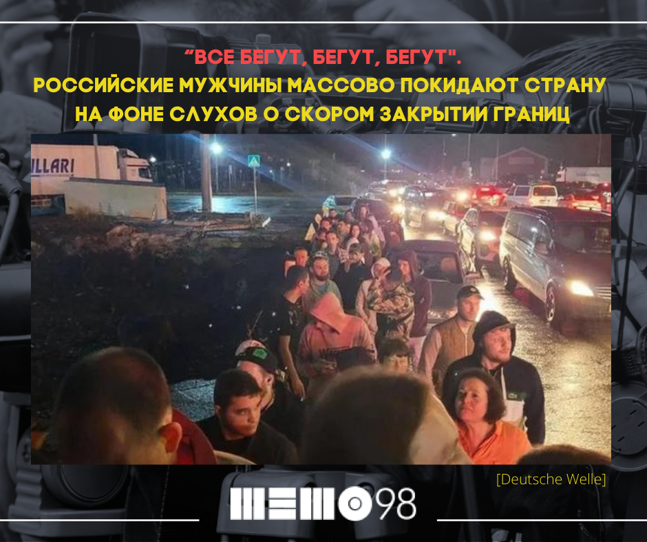 Российские мужчины призывного возраста массово покидают страну на фоне слухов о скором закрытии границ. Как сообщает (https://meduza.io/news/2022/09/25/istochniki-meduzy-soobschili-chto-muzhchinam-mobilizatsionnogo-vozrasta-posle-referendumov-zapretyat-vyezzhat-iz-rossii) независимый сайт «Медуза», власти России собираются закрыть границы для мужчин мобилизационного возраста, По словам источника, близкого к администрации президента РФ, наиболее вероятная дата введения запрета — 28 сентября.