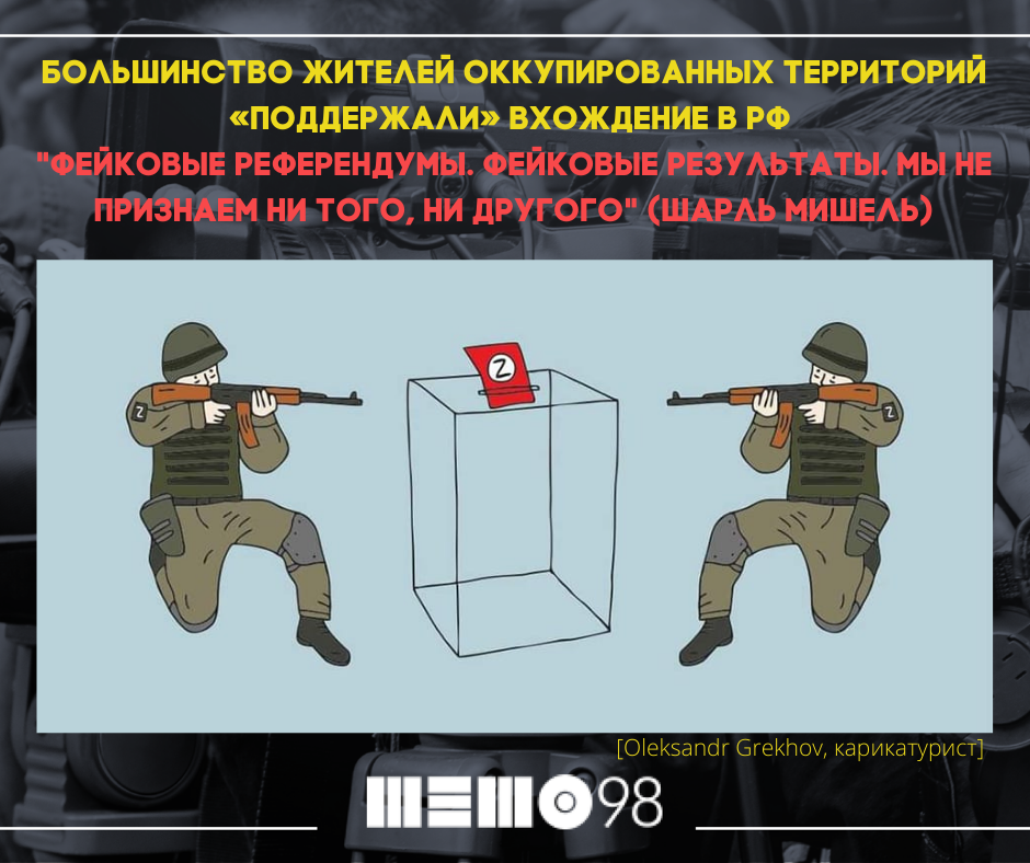 Фиктивные и наспех организованные референдумы на оккупированных Россией территориях Украины являются прологом к аннексии этих территорий, о чем уже открыто говорят в России. Этот сценарий повторяет сценарий аннексии Крыма в 2014 году. Президент Украины Владимир Зеленский заявил, что Москва планирует аннексировать четыре оккупированных региона Украины и заставит людей вступить в ряды российских вооруженных сил – “Или тебя убьют, или ты убьешь".