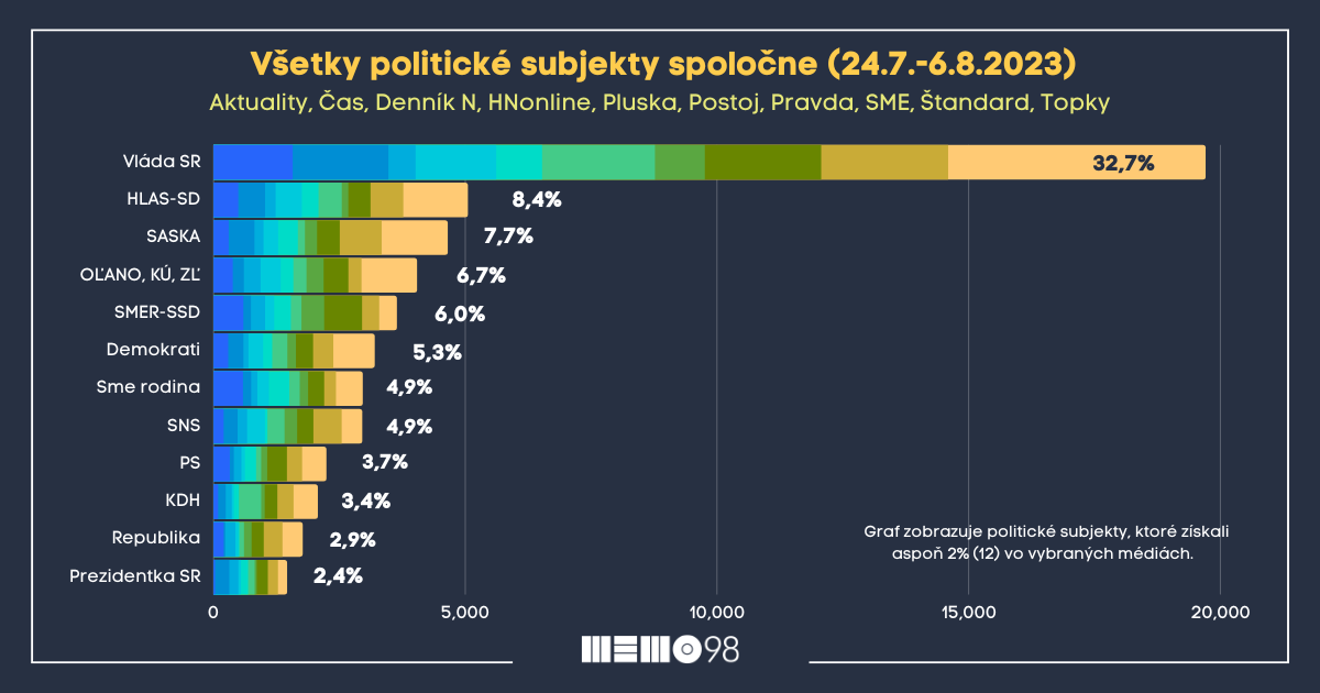 Politické strany v TV & ONLINE spravodajstve (18. august 2023)