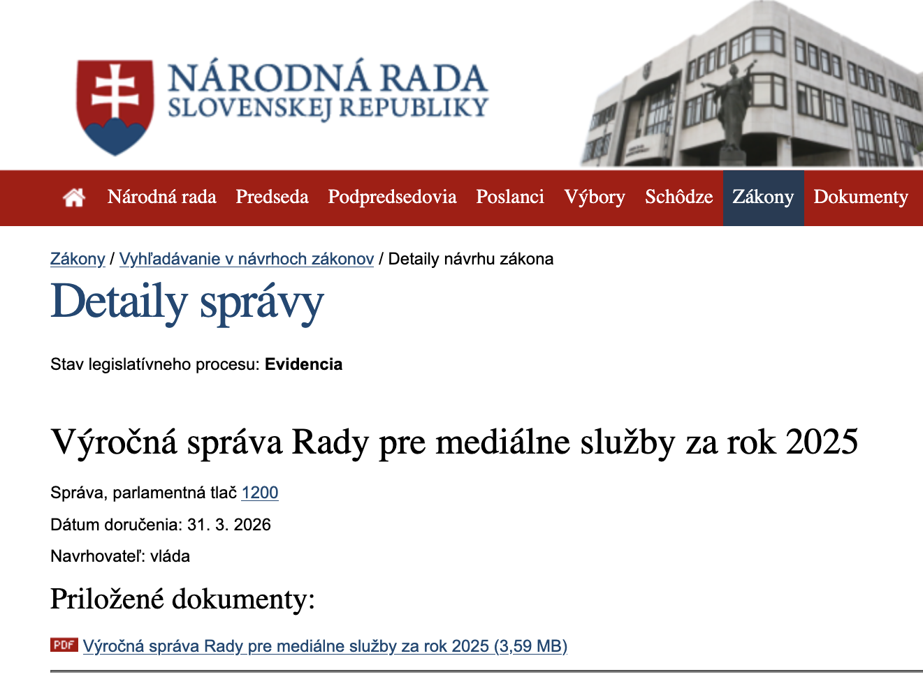 Aktuality analyzovali Výročnú správu 2025 Rady pre mediálne služby (RpMS), ktorú Rada v zmysle predkladá ku koncu marca do NR SR (číslo parl. tlače 1200). Ako uvádza článok, správa RpMS vystavuje verejnoprávnej STVR nelichotivé vysvedčenie. Podľa monitoringu bola najčastejšou politickou stranou v diskusných reláciách strana SMER. Mediálny regulátor v spravodajstve STVR objavil aj PR príspevky vo vysielaní televíznych Správ: "...nadštandrardne pozitívny prístup zaznamenal najmä minister práce a sociálnych vecí Erik Tomáš z Hlasu-SD vsérií príspevkov informujúcich o rôznych zmenách v sociálnych benefitoch pre občanov."